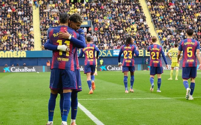 竞赛刚刚开打第12分钟,拉菲尼亚就为巴萨赢得一粒点球,并且亲身操刀命中,协助球队取得了1-0的梦境残局,半场完毕之前,维加飞铲亚马尔被主裁红牌罚下,更让黄潜雪上加霜,下半场亚马尔门前乱战中抽射建功,将抢先优势扩展到了2球,虽然少一人作战的黄潜最后一度构成围攻之势,但靠着门将霍安加西亚的神勇发扬,巴萨成功零封了对手。